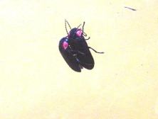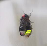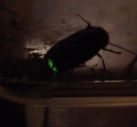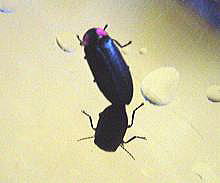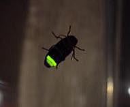 | 雄は雌と光で交信しながら飼育ケースの中をとびわまり、やがて飼育ケースの壁面で交尾し始める。はじめは雌の上に雄がのっていたが、その後向きを変えた。 | ||