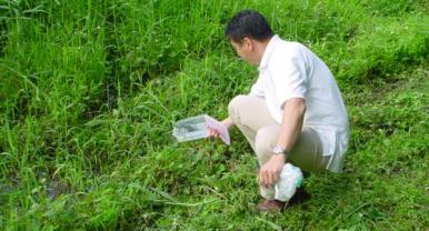 | 1週間後、水のたまり具合や周辺の草のようすの確認に行った。 |