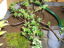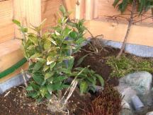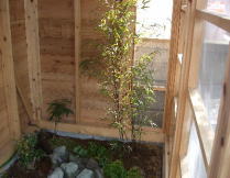 3 池周辺の環境づくり池周辺の環境は、ホタル上陸後の蛹の羽化率にも大きく影響する。昨年の小屋内は赤玉土を使用したが、今回はさらに通気性や保湿性等を持続させるたの用土を配合して、池周辺に入れてある。 池内及び周辺の植物は、ホタルが生息していた場所に生えているものを中心に移植した。 |