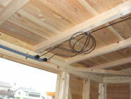 5 降雨器取り付け天候もホタルの行動に影響すると聞いている。小屋内を外の天候に合わせるため、人工的に雨を降らせることができるように、噴霧器を2器取り付けた。 |