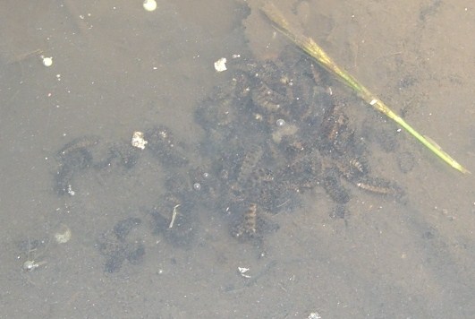 先月から幼虫を一緒に育ててきた方々から「幼虫を放流しました。」というメールが届いている。そろそろ我が家の幼虫も上陸前の大きさまで育ってきたので、放流を開始することにした。第一回目は、200匹を池に放した。水位が下がっており、ザリガニが予想以上に多い。無事蛹になれるのか・・・、心配である。
