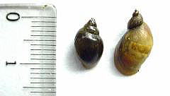 | 右:モノアラガイ 左:サカマキガイ | 右:モノアラガイ 左:サカマキガイ |