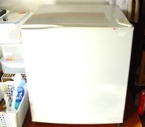| サンショウウオの冬眠(休眠)用に屋外飼育場所を作ったが、今年(平成16年)は暖冬のため完全に冬眠(休眠)状態に入るのは難しいようである。12月になってからも暖かい日が多く、天気が良い日はサンショウウオが活動できる温度になってしまう。土の中は比較的安定しているが、それでも10℃近くになる。これでは冬眠も中途半端になってしまい、必要以上にエネルギーを消費してしまう可能性が高い。 そこで冷蔵庫を使ってみようと考えた。冷蔵庫はリサイクルショップで一番安いものを購入してきた。 |