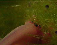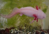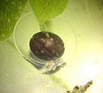平成16年3月4日、昨年知人からもらった4匹のアホロートル(ウーパールーパー)が産卵の時期を迎えた。60pの水槽には、以前から飼っていたものを含め計6匹が入っている。1週間前からオス1匹、メス1匹を別の水槽に移し、産卵に備えた。そして2日前、水温を意図的に下げてみた。 昨日は特に変化は見られなかったが、今日の朝水槽を見ると、水草にたくさんの卵が付いていた。その後もメスは産卵を続けていた。 (水草に見える黒い点は、産み付けられた卵) 水温変化が産卵に影響すると言うことを聞いたことがあったため試しに下げてみたが、まだ1回目の試みなので、今回の産卵の要因が本当にそのためであるとははっきり言えない。 |