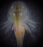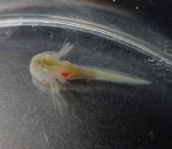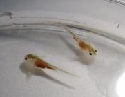 左写真:ブラインシュリンプを与える前の幼生 | ![]() |