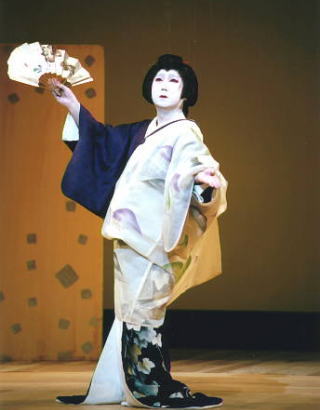| 前回常磐津の「山姥」を踊ってから、約10年経ちましたので、 今回も常磐津で踊りたかったんですが、色々と予算の関係があり まして(汗)、長唄になってしまいました。聴いてる分には実に美 しい曲で、僕も大好きなんですが、いざ踊るとなると何処か物足 りなさを感じるのは、僕だけでしょうか。但し「冬」の部分は実 に名曲で、杵屋直吉さんの素晴らしい唄で踊れたのは、本当に幸 せでした。展示室8と写真を見比べると、今回の方が明らかに老 け込んでますが(笑)、前回よりは少しだけ「山姥」らしく踊れた ような気がしています。10年後にもう一度踊ったら、どんな感 じになるでしょうネ。その時を楽しみに、健康に歳を取りたいと 願っています。そうそう!写真ではよく判りませんが、衣裳の紫 色は写真よりもう少し薄い色で、髷の根には蔦の葉が掛けてあっ た事を付け加えておきます。 |