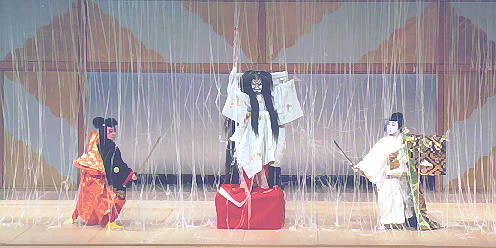 蛛の糸が落ちてくる仕掛けになっています。美しい白拍子が恐ろしい