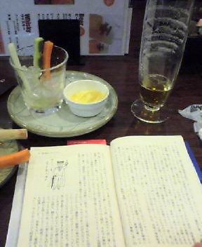 ビール450円と野菜スティック400円とエビのすり身の串焼き170円を頼んだ。