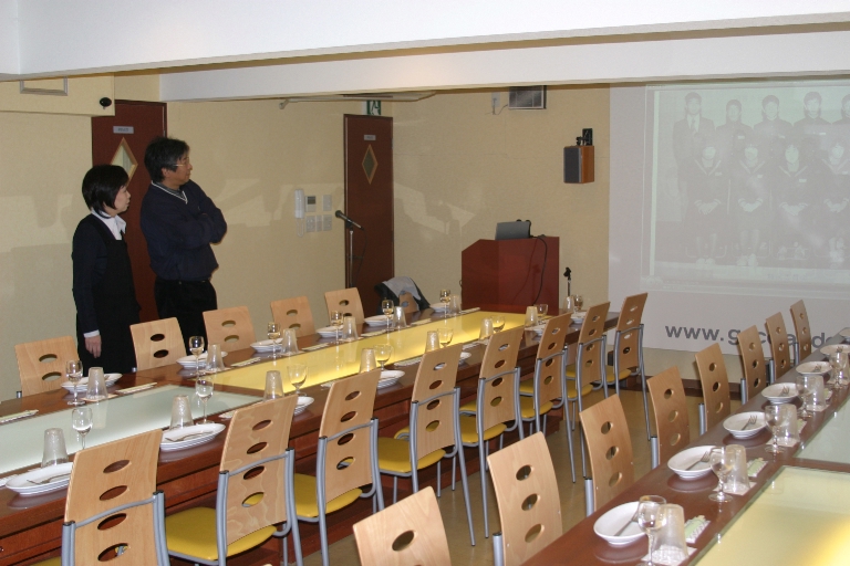 プロジェクターの調子を見るマスターとヒロミ