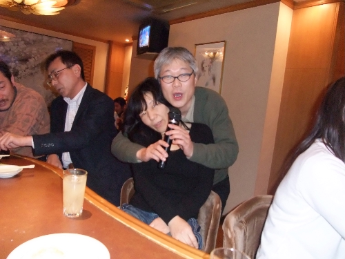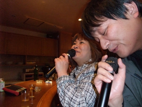 でた〜。ダイエットじゃなく、デュエット!の2人。ニシ熱唱してるね。「さあ、ご一緒に・・・」