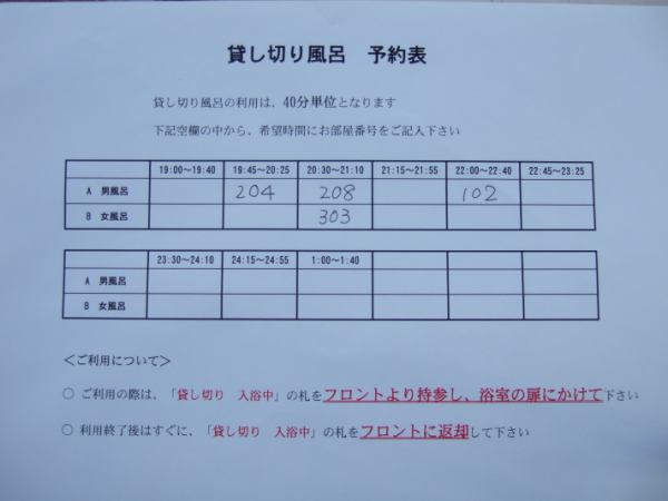 貸し切り風呂 予約表