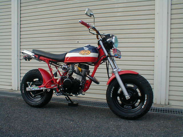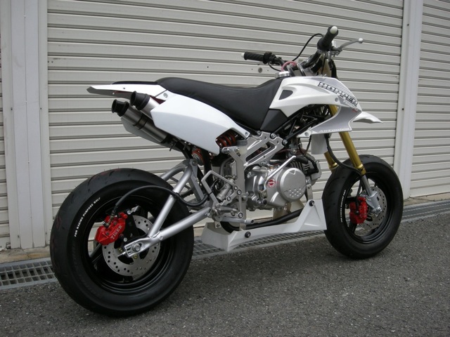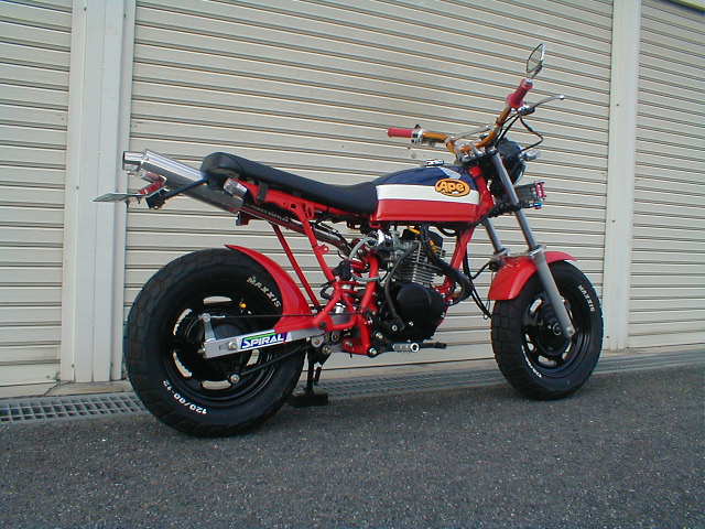前後足回り変更&キャリパーサポート製作・ハンドル&ステップ変更・チャンバー変更・リアサスペンション変更・リアフェンダーレス製作・全塗装 etc..