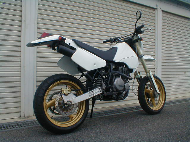「レーサーが公道を走ってる!!風に♪」とのご要望から、お手伝いさせて頂いたカスタムです。ベースが 旧年式 の「XR600R」 だったので悩みました。もしも "当時に モタードレーサー を作ったとしたら???" で「古さを活かした仕上げ」を心掛けたつもりです。