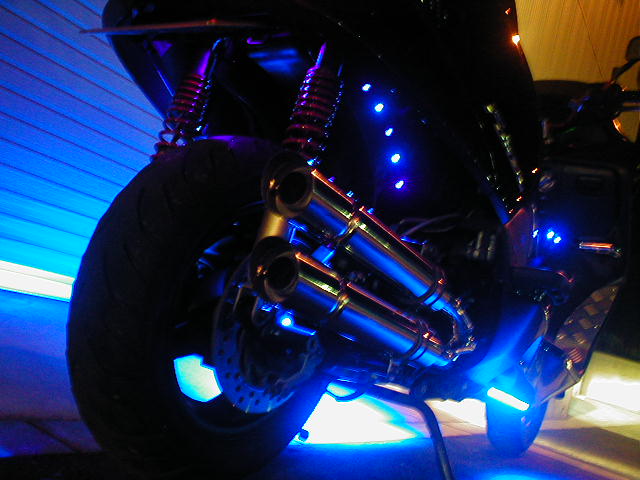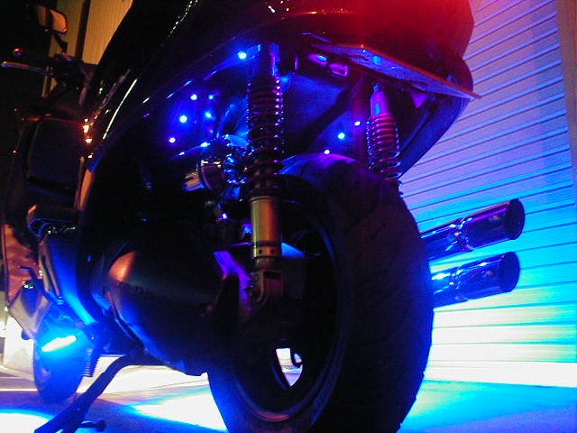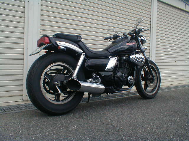ハンドル&ブレーキホース変更・エアクリーナーボックス&リアサスペンション変更・特注2本出しマフラー&リアフェンダーレス製作・イルミネーション&オーディオ(スピーカー変更)&ボルテージメーター装着・テールランプ&メインメーター変更・部分塗装 etc..