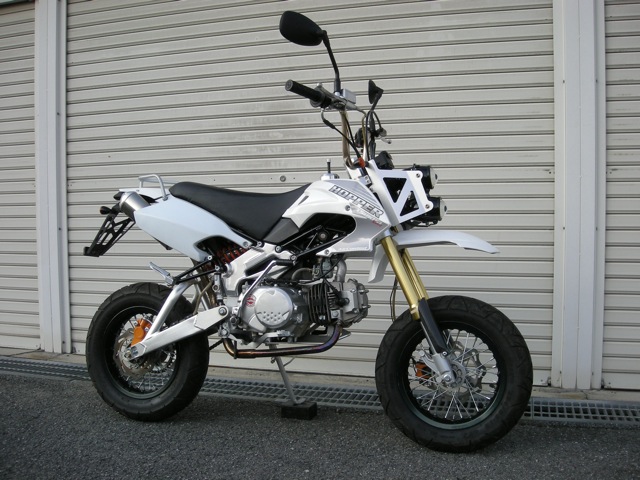 前ホイール変更・キャリパーサポート製作・ゼッケンプレート装着・フロントフェンダーカット・リアフェンダー変更・ヘッドライト変更(ハンドルマウント)・ウインカー変更 etc..