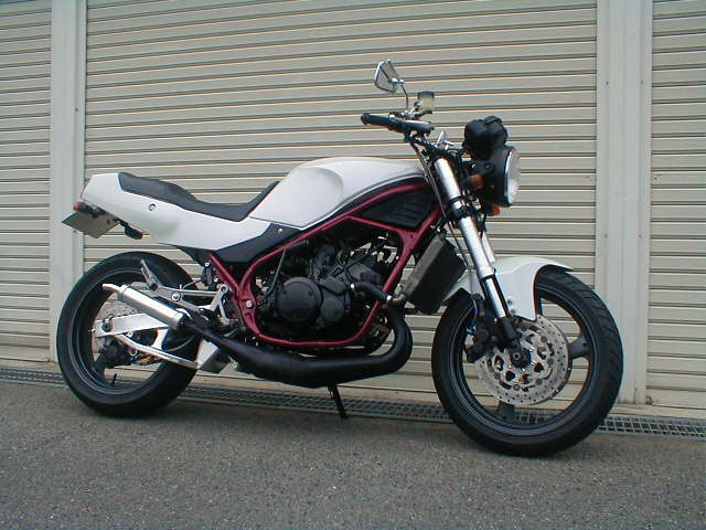 「オールラウンド で ローコスト・それでいて 楽しく走れるバイク が欲しい」とのご要望で、車輌選択から始まった "おまかせ" カスタムです。レーシングモデル「ZXR250」をベースに、同系ネイキッドモデル「バリオス」のパーツを組んでみました。ストリート色を強く押出したので "派手目" になりましたが… 目立ち度も重要でしょう?