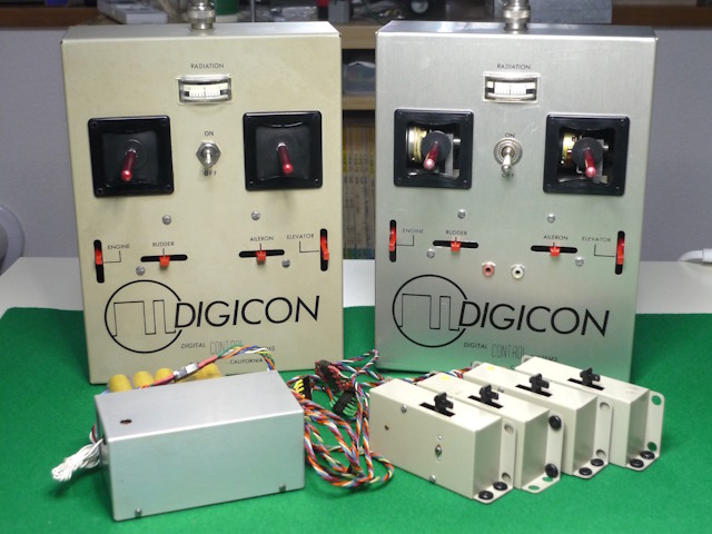 送信機だけですが本当のDIGICONです。左はC&SのDIGICON、右が本家のDIGICONです。外寸等は全く同じです。C&S版はグレーの塗装ですが本家はシルバーのアルマイト処理のみです。印刷ロゴ等は同じです。電源スイッチ下の端子は元の持ち主がバッテリーの電圧チェック用に付けた物でオリジナルではありません。