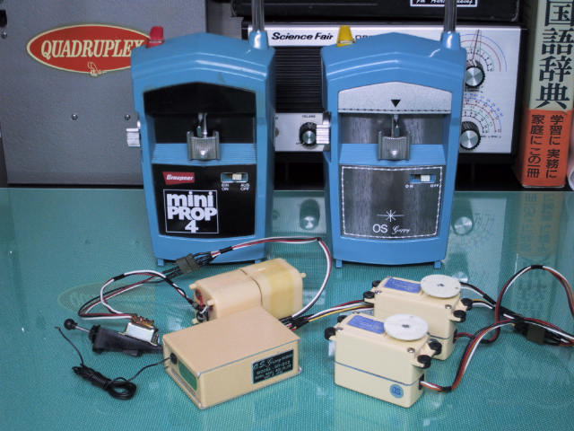 確か1970年代前半のデジタルプロポです。変わったデザインの送信機で、日本では売れなかったのか?殆ど見かけません。GraupnerのminiPROP4はまったく同じデザインですが、中身は日本製でOSが製造してGraupnerに供給していたと思われます。miniPROP4はドイツではかなり売れたみたいで、ドイツのネットオークションでは結構見かけます。