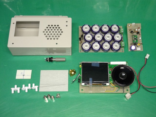 珍しく作っている途中で写真を撮りました。スーパーキャパシタは電力用では無くて普通?のメモリーバックアップなどに使うものです。1Fを12個並列にしているので12Fの容量がある筈ですが電力用では無いので内部抵抗が高く、12個で100mA程度の充放電を行うと実力は8.5F程度です。電力用は内部抵抗が低いのですが耐圧も低いので、2個直列にする必要がありますからバランサーが必要になるので面倒です。