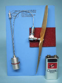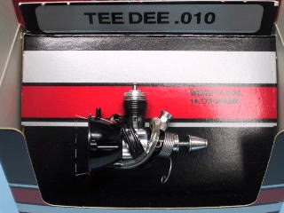 COXのTEEDEE01エンジンです。容積0.163cc重量は14.2gしかありません。私の知る限り量産された世界最小の内燃機関です。直径3インチ、ピッチ1.25インチのプロペラを27500rpmで回します。