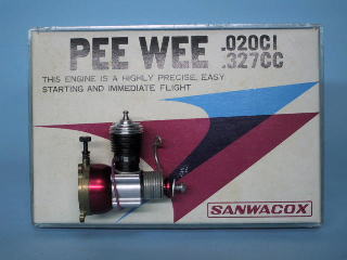 COXのPEEWEE02エンジンです。購入したのは20年ぐらい前ですが、1960年代から現在までまったく変わっていません。1960年代の超小型ラジコン飛行機と云えばこのエンジンと上のML−2、F4−LRの組み合わせでした。リードバルブと云う特徴的な吸気バルブ構造を持っています。これは無線機メーカの三和が輸入代理店をやっていた当時のもので、SANWACOXとなっています。COXは倒産したとのうわさも聞きましたが、現在生き残っているのでしょうか?