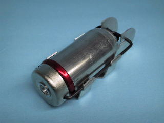 ガスパリンCO2エンジンです。内燃機関ではなくてタンクに入った液体炭酸ガスの圧力で回ります。容積的にはCOXのTEEDEE01より小型です。炭酸ガスが気化する際気化熱を奪いますので、気温の低い時は使えません。燃料は炭酸飲料を家庭で作る際の小型のボンベを使います。