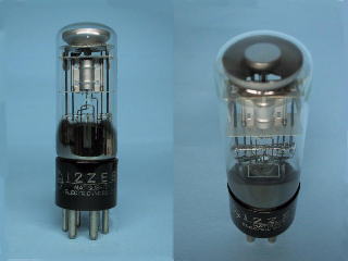 これはマジックアイと呼ばれる表示管で、ラジオのチューニングインジケータに使われました。ターゲット(頭部のお椀型の所)に蛍光体が塗ってあって、グリット電圧により光る面積が増減します。個人的にはVFDの元になった物と思っています。