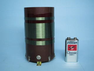 60φもある大きな並4コイルです。以前、秋葉原のラジオデパート1F?にあった小さなお店で購入しました。その店は1m四方ぐらいで3面の壁に真空管が置いてあって、仙人みたいなおじいさんがやってました。ある日行った時にそれまで見たことの無いおばさんが店番していて、店先にこれが吊るしてありました。結構高かったと記憶してますが、あまりの大きさに衝動買いしてしまいました。いっしょにトリオ製の超大型60φ並4コイルの説明書コピーが付いていましたが、これには銘板は無く、トリオ製であるかは不明です。購入した店はその後すぐ無くなってしまいました。店頭にクライストロンの2K25が置いてあったのを今でも覚えていますが、店の名前はまったく覚えていません。