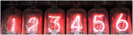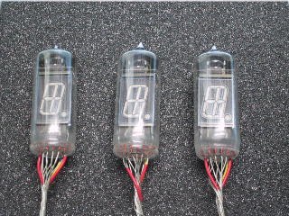 上のサンプルではありませんが、ソニーの卓上計算器に使われていたニキシー管の表示です。数字の形をした電極が奥から0,1,…,8,9と並んでいるので、表示する数字によって位置が前後します。