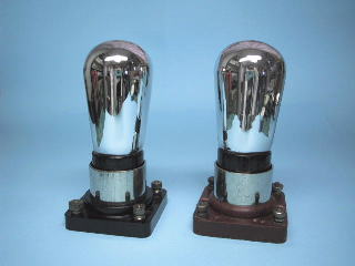 トップチップのガラス球を並べてみました。電球は上の写真とは左右逆に並んでいます。右端は真空管のUV−201です。初期の真空管は電球から始まったことがなんとなく想像されます。