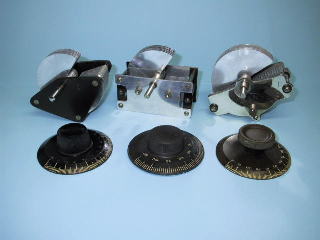 昭和初期のバリコンです。左端はエボナイト製フレームの大正時代の型式です。中央はアルミフレームのギルフィラン型です。昭和初期のラジオには良く用いられており、ラジオコレクションページの山中電機のラジオもギルフィラン型のバリコンです。右端も昭和初期のバリコンです。いずれも程度の良さが自慢です。