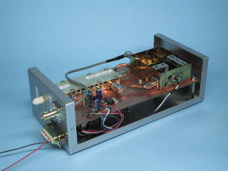 1stIF(3GHz),2ndlocal(2388MHz),2ndmixer,2ndIF(612MHz),3rdlocal(567MHz),3rdmixerのユニットです。1stIFと2ndmixerははマキ電機の2.4GHz8連キャビティに組みこみました。2ndlocalはこれもマキ電機の局発キットを改造して。49.75MHzXtal発振を48逓倍して、2388MHzを得ています。2ndIFと3rdlocalはCATVチューナユニットの一部分を切り出して使いました。