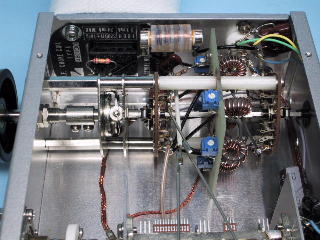 不要電波の放射防止と安定動作のために高周波増幅回路は必要です。計画ではバンドパスフィルターと6BA6の1段増幅を予定してました。6バンド分のバンドパスフィルター部分のみ完成しています。(写真右)これらのユニットを薄型のケースに納めて、最近の通信機型受信機のデザインで完成させる予定でした。完成すれば、今まで公開された製作記事に無い斬新な物になると自負していますが、ここまで来て飽きてしまいました。何時の日かまた再開することを信じて、このまま捨てずに仕舞って置きます。(中海干拓計画と同じ道かも?)