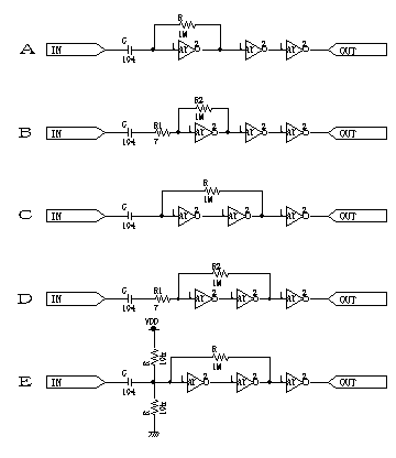 A,Bのアンプ形式のものは、どうしても無入力の時に発振します。正規の信号が入ればそれに強制同期しますから常時信号が入力されている場合、例えばPLL回路のVCO出力の分周器などには使えます。信号が極端に小さい時などは有効かもしれません。