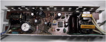 そのまま少しの間点灯させていましたが、変な匂いがします。電源の平滑コンデンサC2(47μF180V)のコンデンサが加熱しています。オシロでコンデンサの電圧を観察すると、ブリッジ整流後の波形がそのまま出ています。取り外して容量を測ると0μF、完全に死んでいます。よく動くものです。これも交換します。電圧は見なれた平滑コンデンサの波形になりました。加熱もしません。