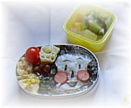 うずら豆・プチトマト・マカロニ・ウィンナー・果物