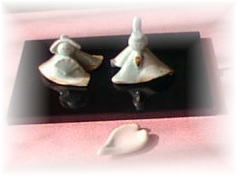 | お気楽家のお雛さま達・・・ 女の子のいないお気楽家。クリスマスグッズもさる事ながら、 お気楽が趣味で集めたお雛さまが、何体か…。 ちぃさい。ちぃさいお雛さまだけど、どれも私のお気に入り。 立春明けのお天気の良い日に物置から出してきて、 お雛さま気分を運びます。 ![]() このお雛さま、我が家で一番お高いお雛さま。 ご近所の器やさん“き・き・き”で、見つけました。 ![]() ドライブ中に、ふと立ち寄った、木工細工のお店で見つけたお雛さま。 ![]() 京都の和紙工芸のお店。風の詩で、購入。 ![]() 我が家に一番最初に来たお雛さま。 菱餅が、ふたになって、収納できるのです。 さて、この子達。どの子をどこに飾ろうかしら? |