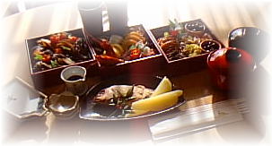 | 昔から日本では、年の始め、神様にその年の豊かな実りを願い、お供えをしました。 家族の健康を祈って、海の幸。山の幸をお重に詰めてお正月に食べたのが お節料理の起こりです。 神様と一緒に頂く、という意味から、お祝いのお箸は、 両側が細くなっています。 我が家の旦那様は、それぞれの干支の袋に入った祝い箸を用意し、 お正月のご馳走を食べたそうです。 私の実家では、特にそのような習慣はありませんでしたが、 この話を知ってから、我が家のお正月のお祝い箸は、祝い箸を用意するようになりました。 お気に入りのお重箱に、手作りのお節を詰めていただく元旦の朝の食卓。 本によって、詰め方が違うので毎年頭を悩ませながらお重に詰めるお節料理。 今年は、この様に出来ました。 |