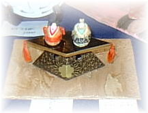 ![]() 下に薄っすら写っている器も素敵なの。 ![]() 桃と橘も、ちりめん製の手作り。 かわいかった…。 ![]() ![]() はまぐりに乗っているお雛さま。 下に写った器が、気になるお気楽。 ![]() |