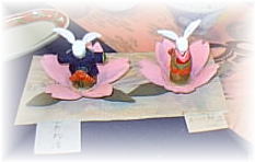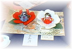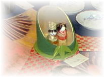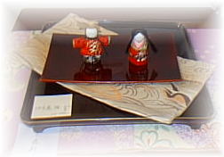 ![]() 箸置きのお雛さまもお皿に乗ると、 随分感じが変わってきます。 |