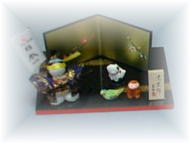 こんな色紙も、ついつい・・・ ![]() 王子がお腹にいる時に京都で買った和紙人形。 お雛様を買って、??もしお腹の中身が姫じゃなかったら…。買っておいて良かった〜。 ![]() こんな角砂糖も買ったけど、なかなか使えませんね。飾りになってます。 ![]() お気に入りのくまさんも子供の日仕様で・・・。 |