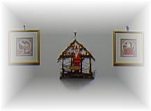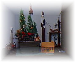 玄関を入ってすぐ、たくさんのサンタさんが出迎えてくれます。 |