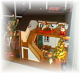 リビングの出窓の、ドールハウスは、彼女のお父さんの手作りです。