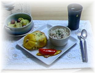 (ところで、このミニかぼちゃ、なんだか水っぽくって、それだけではあまりおいしくなかったのは、安かったせい?)