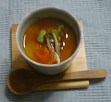 この日はおめかしをして、紅葉方のにんじん、シメジ、冷凍庫にあった、そら豆(←季節だろうか?)を使用。