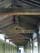 七不思議の一つ中門の中央の柱。この門は日本建築上ほとんど例がない、入り口が2戸あり、その中央に柱が立つ構造をしています。