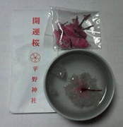 桃桜・嵐山・普賢象・松月・魁・大島・芝山・御衣黄・御車遷・突羽根・妹背・平野・白雲・手弱女・十月桜・楊貴妃・有明・寝覚・一葉・おけさ・旭日・虎の尾・紅しだれ・衣笠・胡蝶・大内山 (←境内に植わる桜の名前)