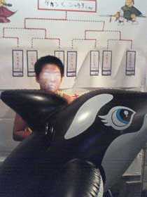 ちなみに、「笛吹き大会」以外は、「ダーツ」や「コイン落とし」「金魚すくい」「ヨーヨーすくい」「キックボール」といった屋台が出ました。笛吹き大会のお手伝いをする前に、コイン落としのグースでお手伝いしてました。コイン落としやったことあります?結構難し〜よ。夜店でお子ちゃま達は大喜び、テンション上がりまくりです。暑くても元気一杯、いや〜、実にうらやましい……。こんな風に、久しぶりに笑顔の子供たちに囲まれていると、元気になりますね。でも……たまにでいいや。。