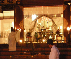 21時頃まで執り行われます。まず始めに、神童がご神前に鈴虫を、お供えします。やはり秋の神事には、鈴虫なんですね。