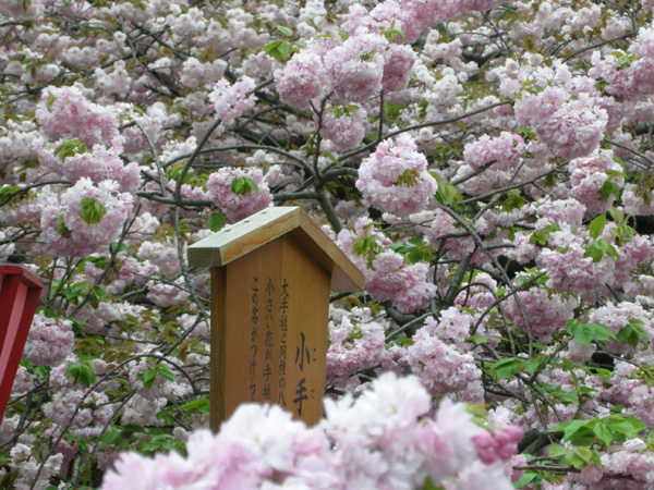 八重桜で、満開時の美しさはたとえようもありません。紅手毬、大手毬、小手毬及び養老桜などは、他では見られない珍種と言われています。造幣局の所在地である、大阪市北区天満の旧淀川沿いは、昔から景勝の地として名高く、春は桜、夏は涼み舟、秋は月見など四季折々の